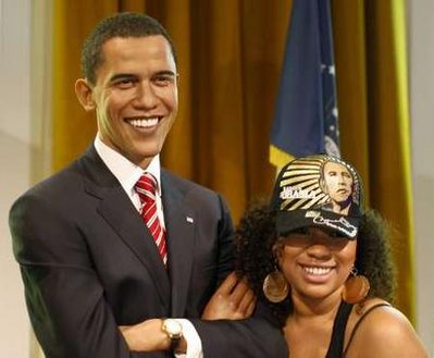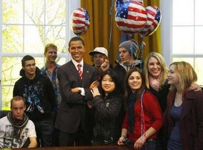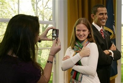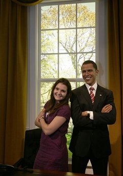 tourists celebrate Barack Obama's inauguration at Madame Tussauds Wax
