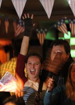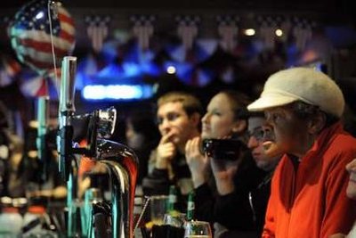 Obama's Inaugural Address on TV at a London Bar where patrons celebrate