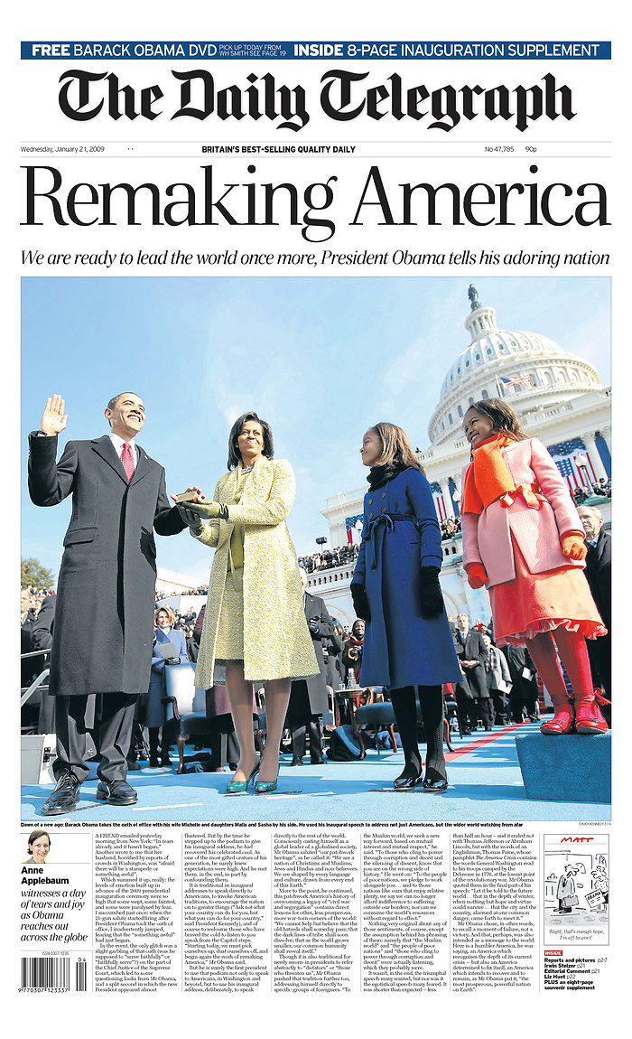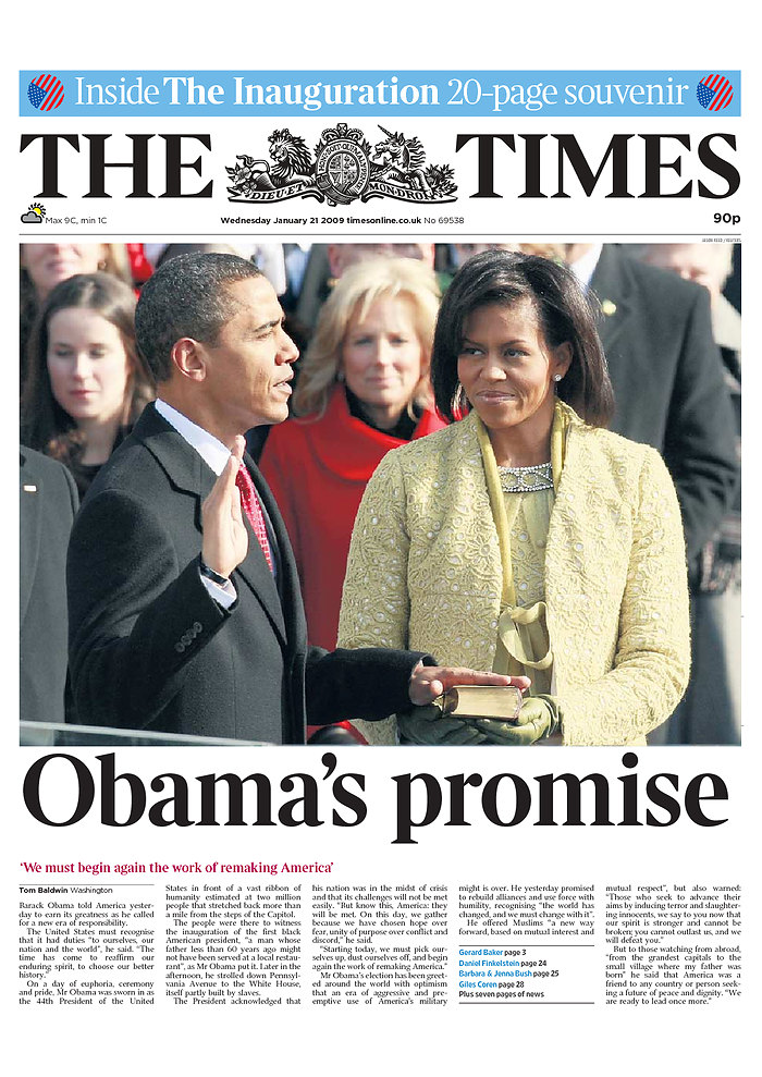 The Inauguration of Barack Obama Dominates TV and Newspapers in UK