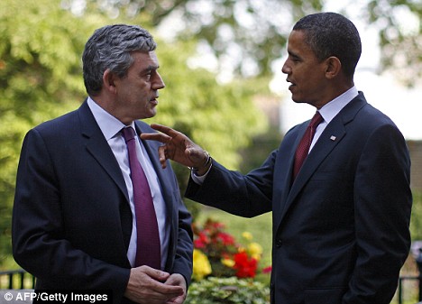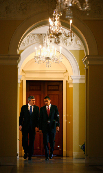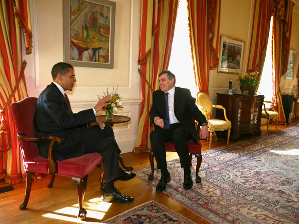 Minister Gordon Brown and Barack Obama meet at the British Embassy in