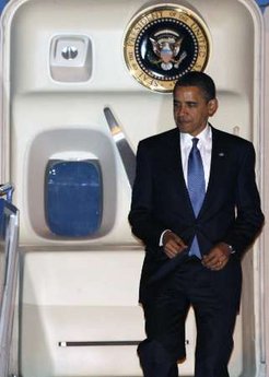 President Barack Obama arrives in Ankara, Turkey on Air Force One on April
