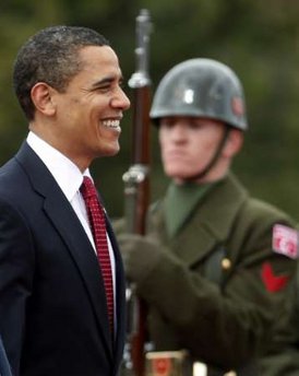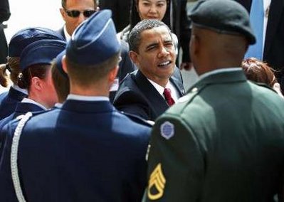 prior to a Welcoming Ceremony for the US President on April 6, 2009. |