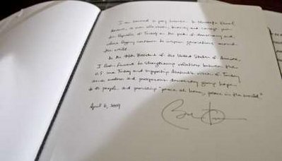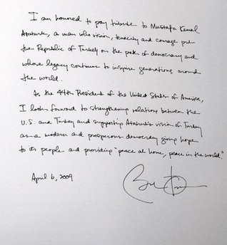 President Barack Obama signs the Memorial Book in the Anitkabir
