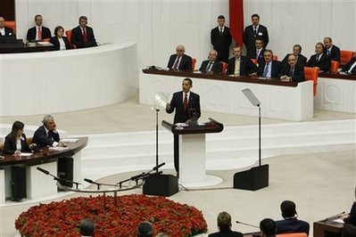 Obama's Address to Parliament he was thanked by Turkish Prime Minister