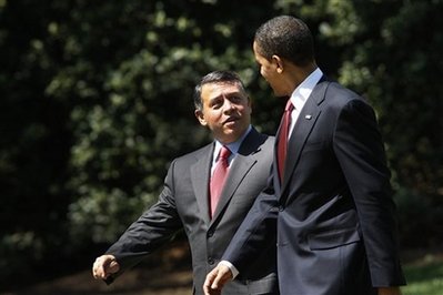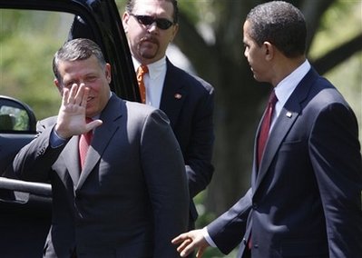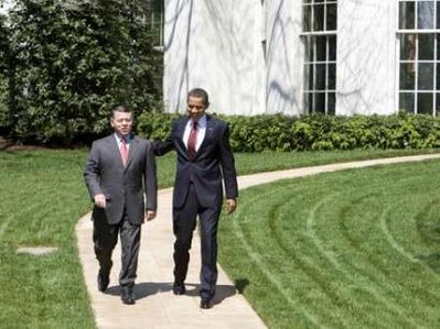 President Barack Obama walks King Abdullah II of Jordan to his limousine