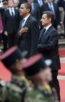 with French President Sarkozy the co-host of the 60th NATO summit in