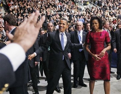 President Barack Obama and First Lady Michelle Obama say goodbye to the
