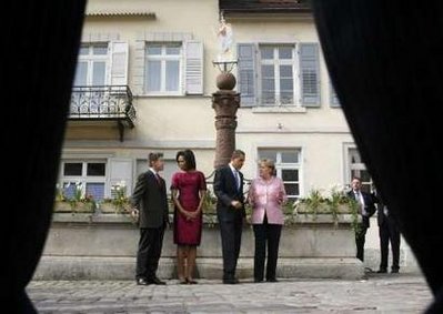 in Baden-Baden, Germany. President Obama is on his way to City Hall with
