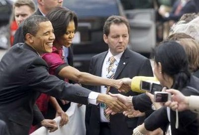 President Barack Obama and First Lady Michelle Obama are cheered by the