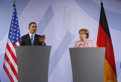 President Barack Obama and German Chancellor Angela Merkel hold a joint
