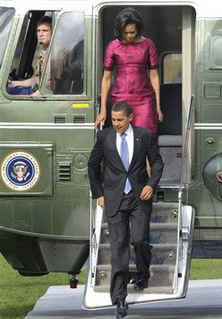 President Barack Obama and First Lady Michelle Obama arrive on Marine