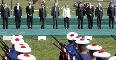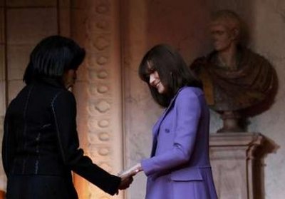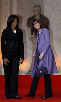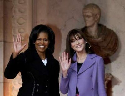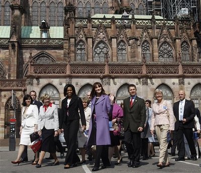 Michelle Obama meets First Lady Carla Bruni-Sarkozy and the spouses of