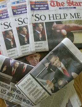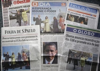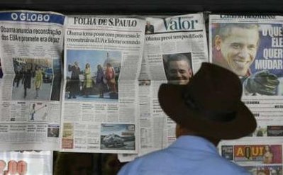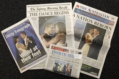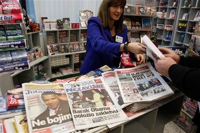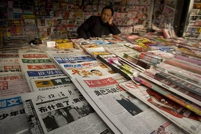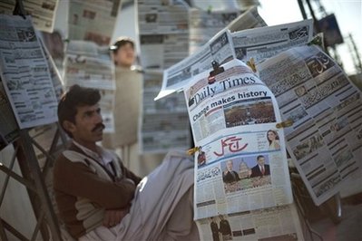 Newspaper runners get ready in Islamabad, India (left). Newsstand in