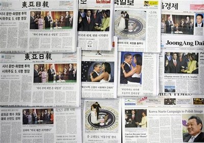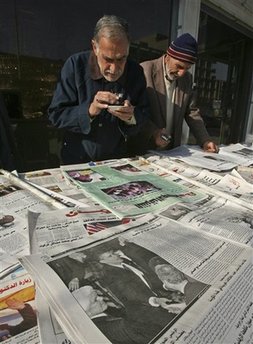 Newsstand seller in Budapest, Hungary (left). Readers at New Delhi,