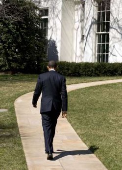 escorts Da Silva across the South Lawn of the White House to a waiting