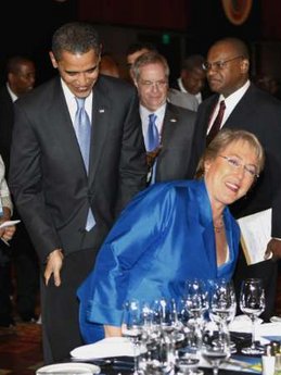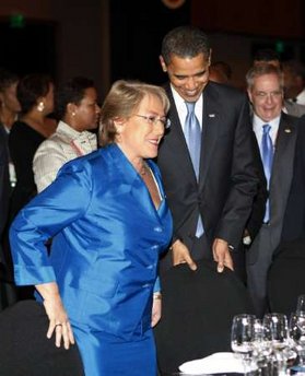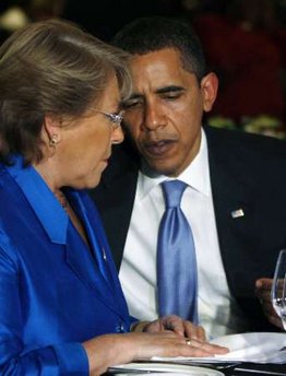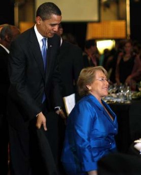 President Obama sat next to Chilean President Michelle Bachelet and the