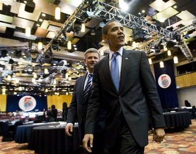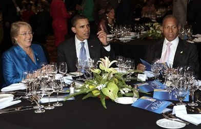 Tobago. President Obama sat next to El Salvador's President Tony Saca,