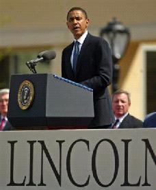 Obama speaks at the opening of the Lincoln Presidential Museum in Illinois. |